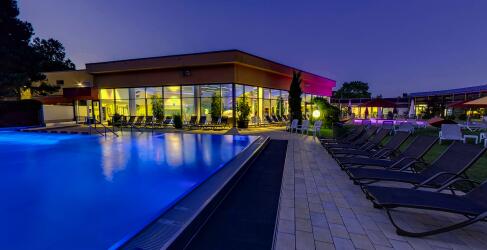 - Heilendes Thermalwasser aus 450 m Tiefe – 32 °C warm, Innen- und Außenbecken