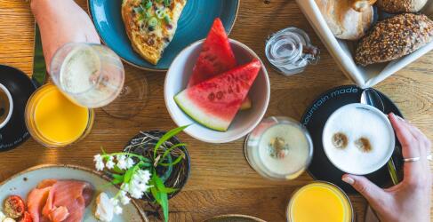 Schon am Morgen startet dein Urlaubstag mit einem abwechslungsreichen Frühstücksbuffet voller frischer Köstlichkeiten, regionaler Produkte und vitaler Genussmomente. Danach locken Kaprun und seine Bergwelt mit zahlreichen Restaurants, Hütten und Cafés für kulinarische Entdeckungen.