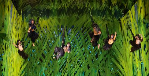 Freu dich auf einen Abend voller Emotion, Spannung und Abenteuer und fühle dich dank der 360° Inszenierung, als wärst du mitten in Tarzans Dschungelwelt. Die berühmte Musik von Phil Collins, ein spektakuläres Bühnenbild und atemberaubende Luftakrobatik machen deinen Musicalabend perfekt.