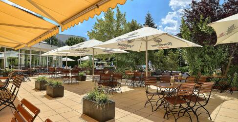 Gemütliche Sonnenterrasse im hoteleigenen Biergarten